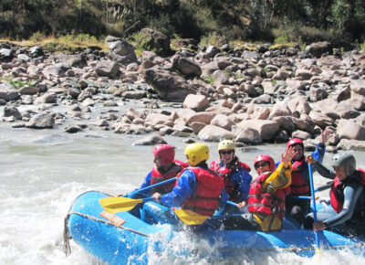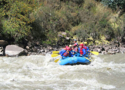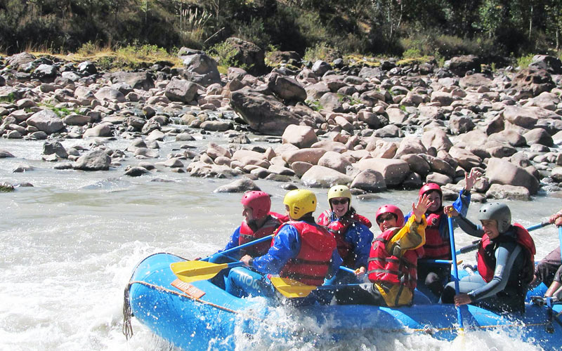 A las 09: 00 am. partiremos hacia el río Urubamba en el Sagrado Valle de los Incas (Norte de Cusco), donde nuestra guía dará una charla introductoria sobre la seguridad y el uso del equipo para comenzar nuestro por el Urubamba. Nos transportaremos en balsa por alrededor de 2 horas y ½ en los rápidos de II, III. IV+ y V, dependiendo la ruta que seleccionemos. Podremos llegar a correr en Huambutio hasta clase II, Ollantaytambo Clase III (Nosotros lo ejecutamos de mayo a diciembre), Quiquijana Class III (Diciembre a Mayo) y Chuquicahuana en Clase III, IV y V (de Diciembre a mayo) para este último, ese es el más difícil, así que por nuestra seguridad tomamos un kayac, que significa una guía extra simplemente para la seguridad.